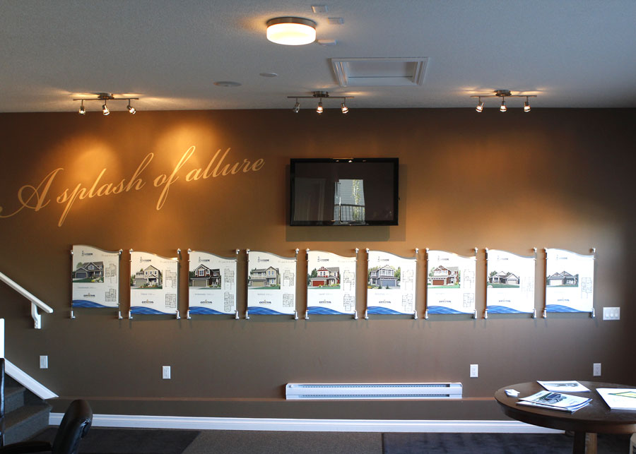 Complete design from initial brand development design, to community brand concept design, through information design, graphics presentation strategy, sales centre interior design, marketing materials design, signage design, production and installation management. Web site development. Print advertising campaigns.